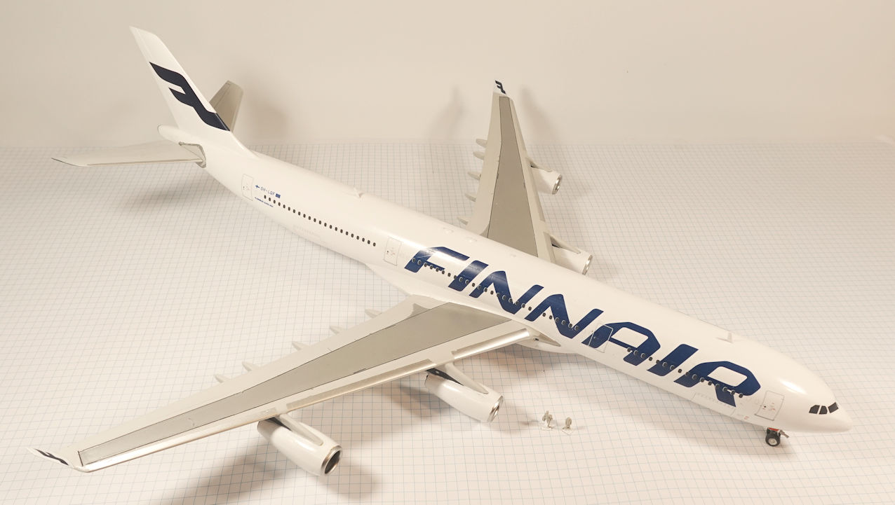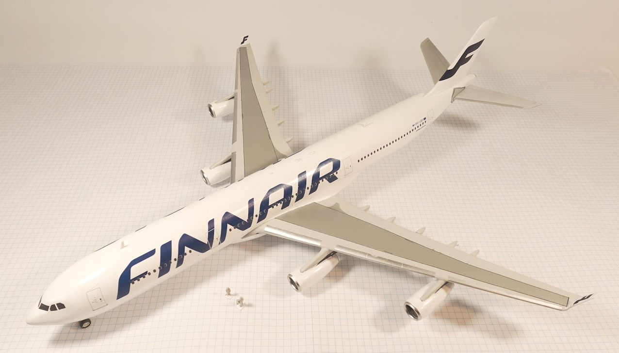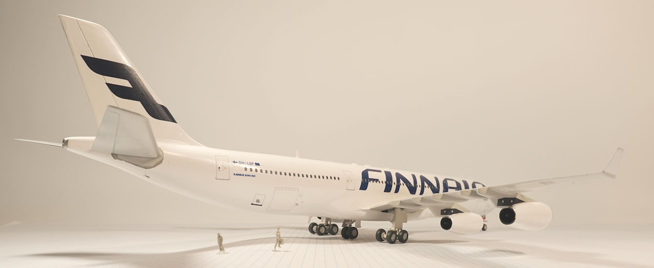 The A.340 began life with plans to develop the Airbus A.300 and uses many of the fuselage components of the earlier airliner with improved avionics and a new four engine wing