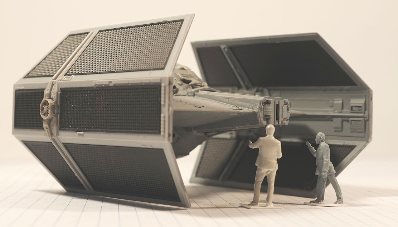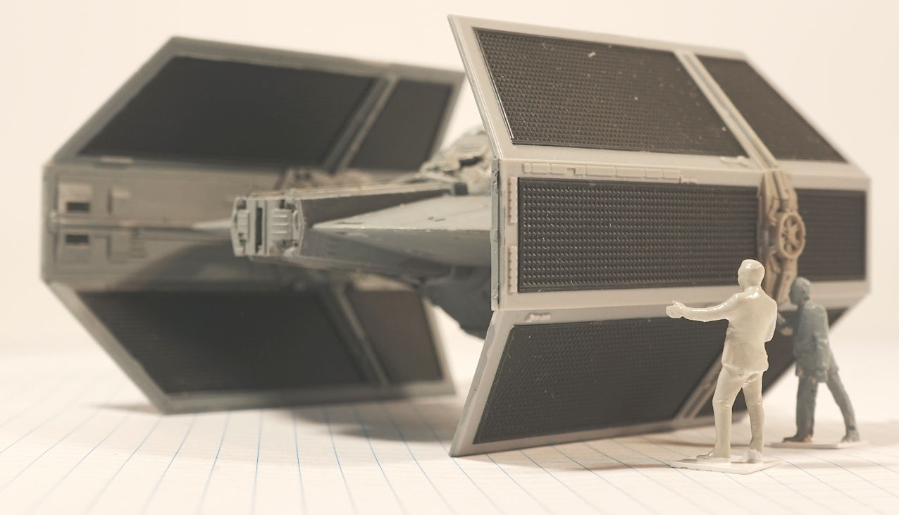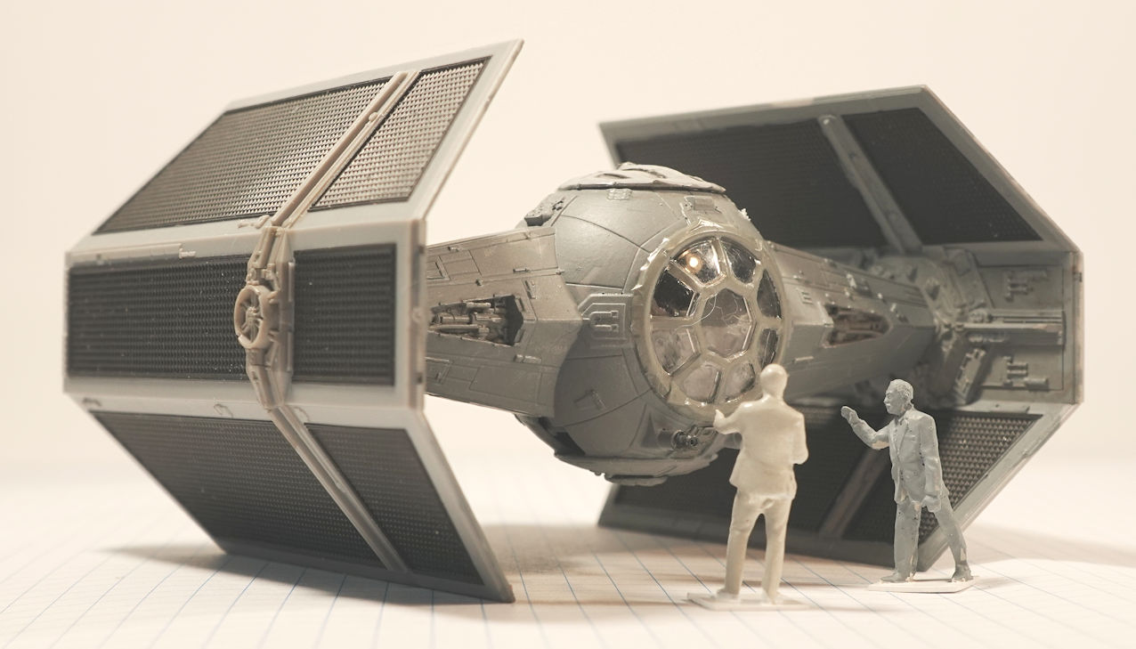 This model represents the TIE Advanced v.1 flown by Lord Darth Vader during the Battle of the Death Star (also known as the Battle of Yavin) in 0 BBY.